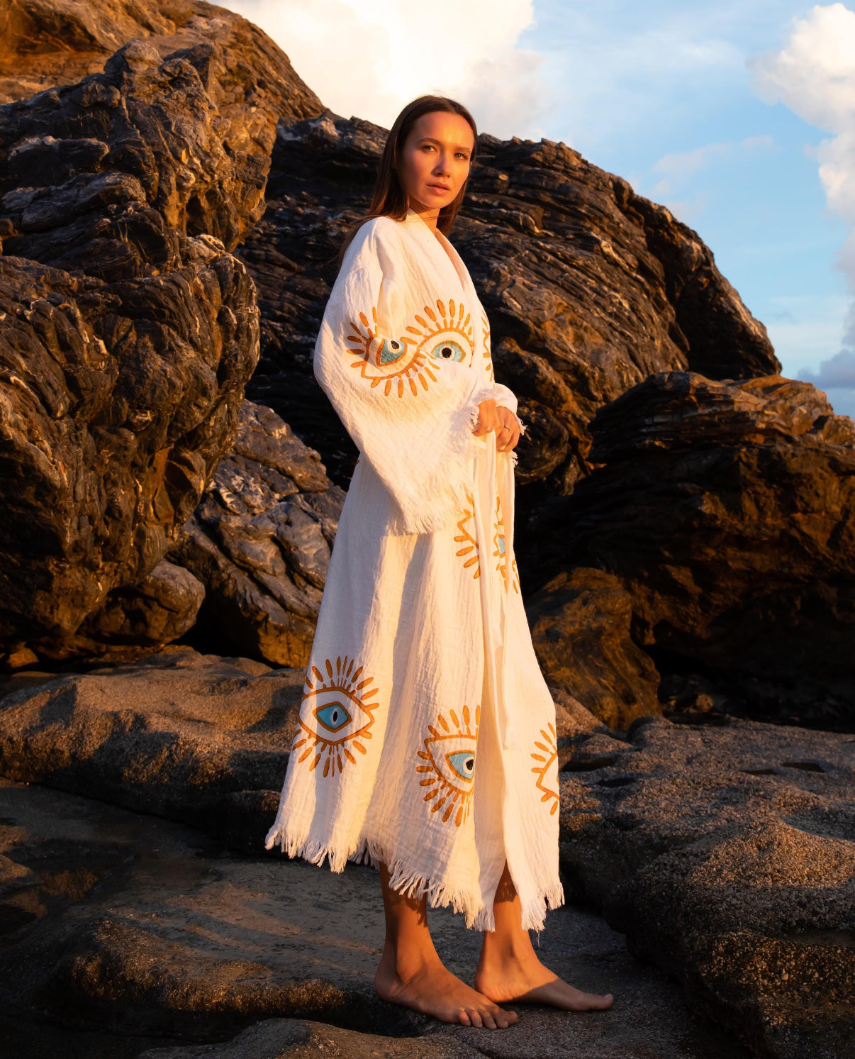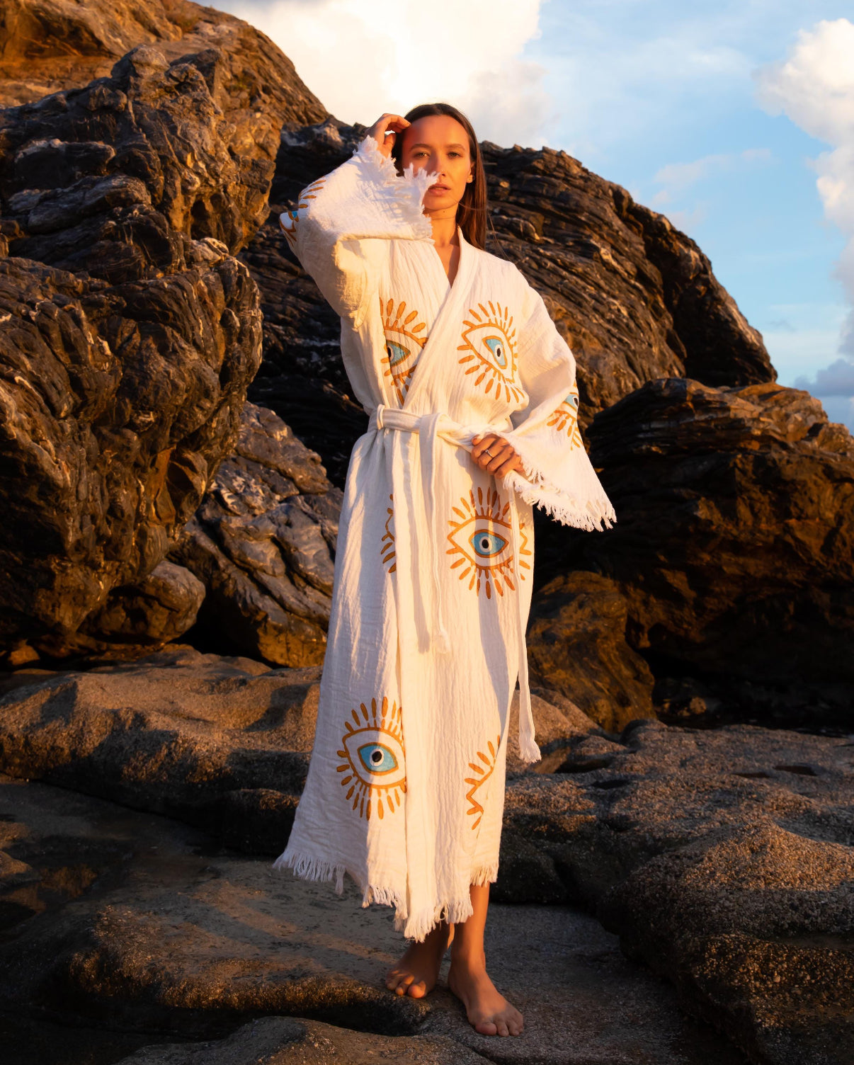 Crafted from 100% organic cotton, this robe is woven with exceptionally breathable Anatolian yarn. The result is a fabric chosen for its softness, purity, and elegant drape. It is lightweight, highly absorbent, and quick to dry, making it ideal for slow mornings, coastal escapes, spa rituals, and every moment of calm in between.